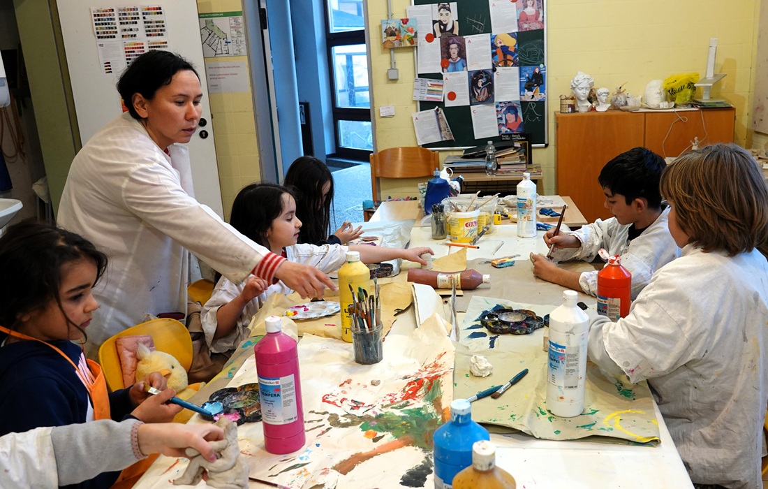 Es ist ein Mittwochnachmittag in der Grundschule Dilsberg-Mückenloch. Fünf Kinder sitzen um einen großen Tisch, Pinsel klappern in Wassergläsern, Farben mischen sich auf Paletten. Konzentriert bemalen die jungen […]