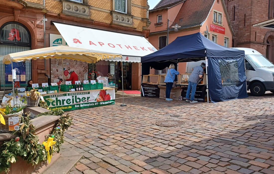 Wochenmarktbesucher freuen sich über frischen Spargel
