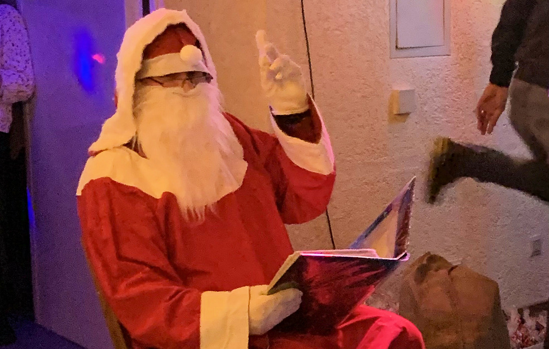 Das zweite Fenster gestaltete der FC Dilsberg im Rahmen seiner Nikolausparty im Clubhaus. Zahlreiche Familien kamen mit ihren Kindern, die gespannt auf den Nikolaus warteten. Das leise Erklingen eines Glöckchens kündigte schließlich seine Ankunft an. Andächtig lauschten die kleinen Gäste dem vorgetragenen Gedicht, bevor sie eine kleine Gabe aus dem großen Sack erhielten.