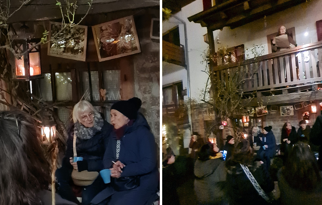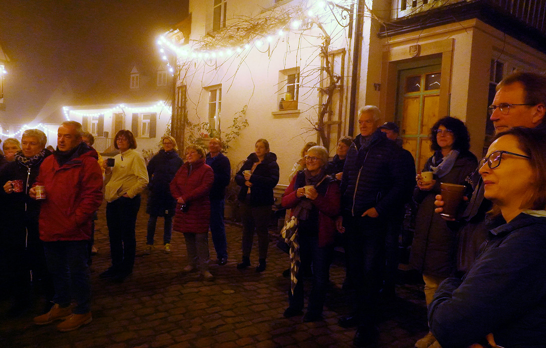 Neben dem Treffen bekannter Gesichter, lernen sich auf diese Weise auch Menschen in Dilsberg kennen, die sonst wenig Gelegenheit dazu haben, und genießen gemeinsam die kleinen, stimmungsvollen Momente des Advents.