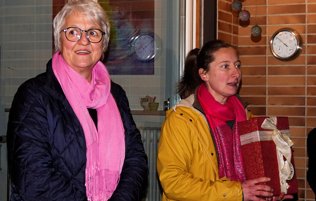 Am 18. Dezember luden Jeanette Roth und Desiree Metzger vor dem Tor zu einer festlich geschmückten Minibar ein. Dort gab es Würstchen, Punsch und Glühwein. Zum Klassiker „Last Christmas“ animierten sie die Gäste zu einer kleinen Tanzeinlage.