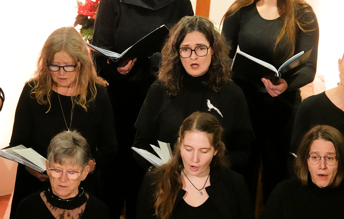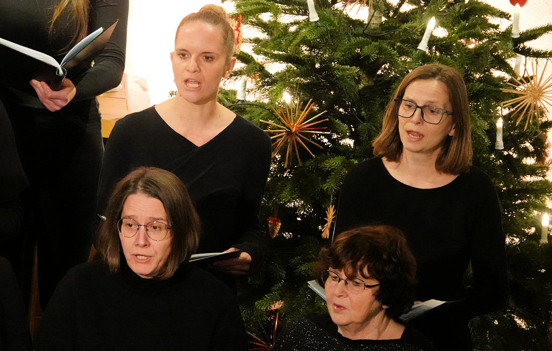 Den Auftakt bildete der Kanon „Auf, werde licht“ nach Jesaja 60,1. Die 19 Sängerinnen liefen singend von draußen herein bis vor zum Altarraum. Es folgten Werke wie „Days of Beauty“ von Ola Gjeilo und „A Shining Star“ von Knut Nystedt, die mit feiner Dynamik und klaren Linien überzeugten. Choralsätze wie Robert Schumanns „Zu Bethlehem geboren“, von Bernd Stegmann eigens für den Chor bearbeitet, oder „O little town of Bethlehem“ fügten sich nahtlos ein. Ruhige Stücke wie „Still, still, weil’s Kindlein schlafen will“ oder Gustav Holsts „In the bleak midwinter“ schufen dichte, fast meditative Momente.