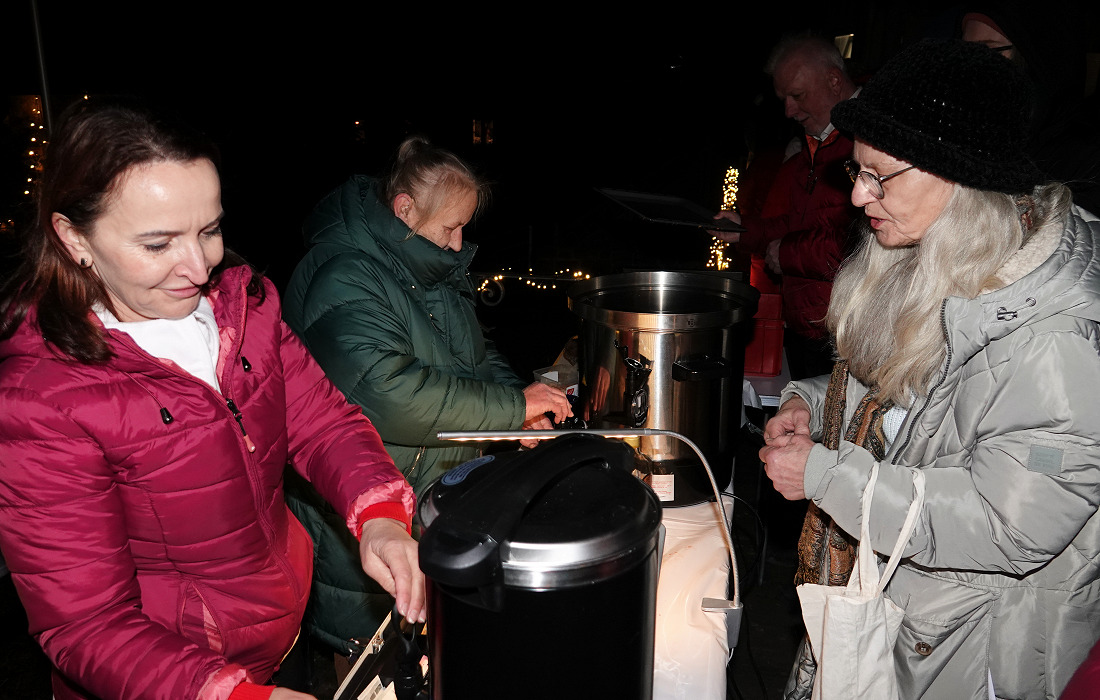 Im Anschluss lud der Förderverein der evangelischen Kirche zu Glühwein, Punsch und Naschwerk ein. Karin Ullrich-Brox, Ernst Merdes, Harald Breitenbach, Tanja Haberer und Helfern. Unter dem sternenklaren Himmel, der sich an diesem Abend zeigte, blieben viele Besucher auf der Kirchenterrasse, kamen ins Gespräch und tauschten Weihnachtswünsche aus. Ein Abend, der musikalisch wie menschlich rundum gelungen war.