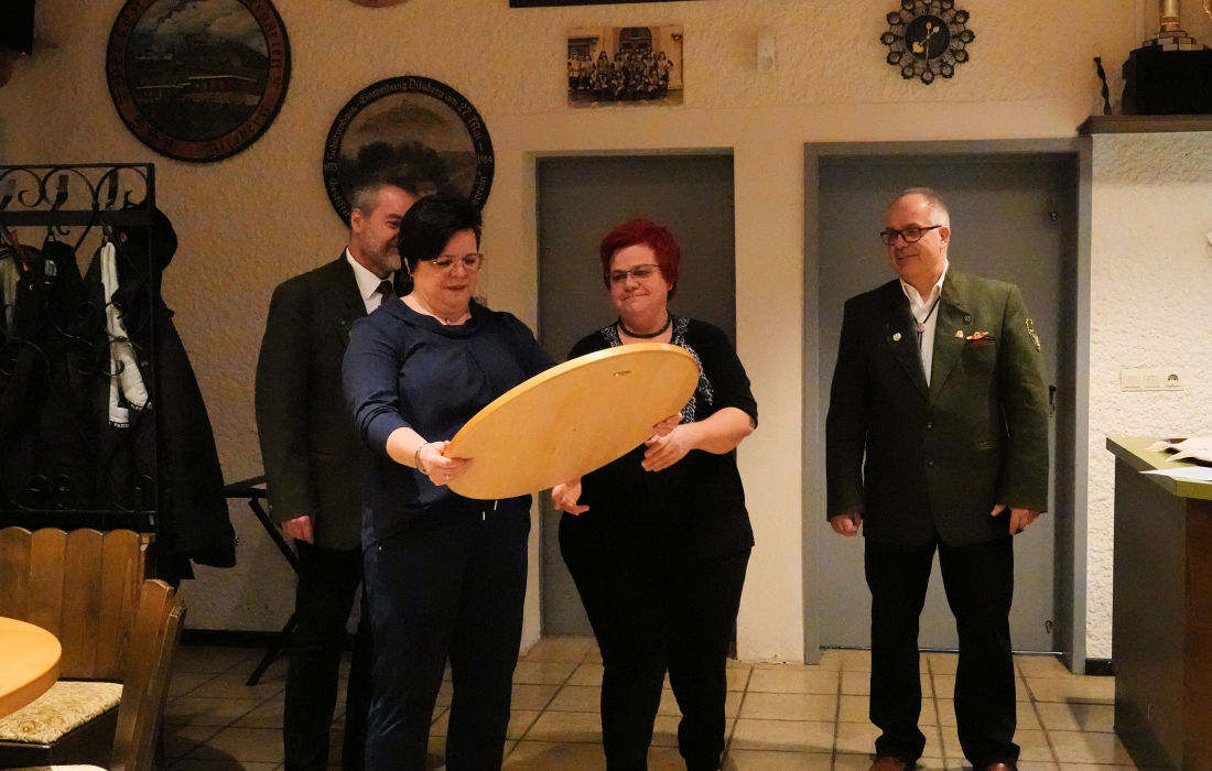 Nach diesem Appell an die Anwesenden startete der angenehme Teil des Abends, mit der Vorspeise des 3. Gänge-Menü, welches auch dieses Jahr wieder von unserer Köchin Annett Müller zubereitet wurde. Mit Hilfe von einigen Helfern, welche wie jedes Jahr die Dekoration des Schützenhauses übernahmen. Die Vorspeise wurde den Anwesenden an den Tisch serviert. Danach wurden die Gewinner der Scheiben bekanntgegeben: