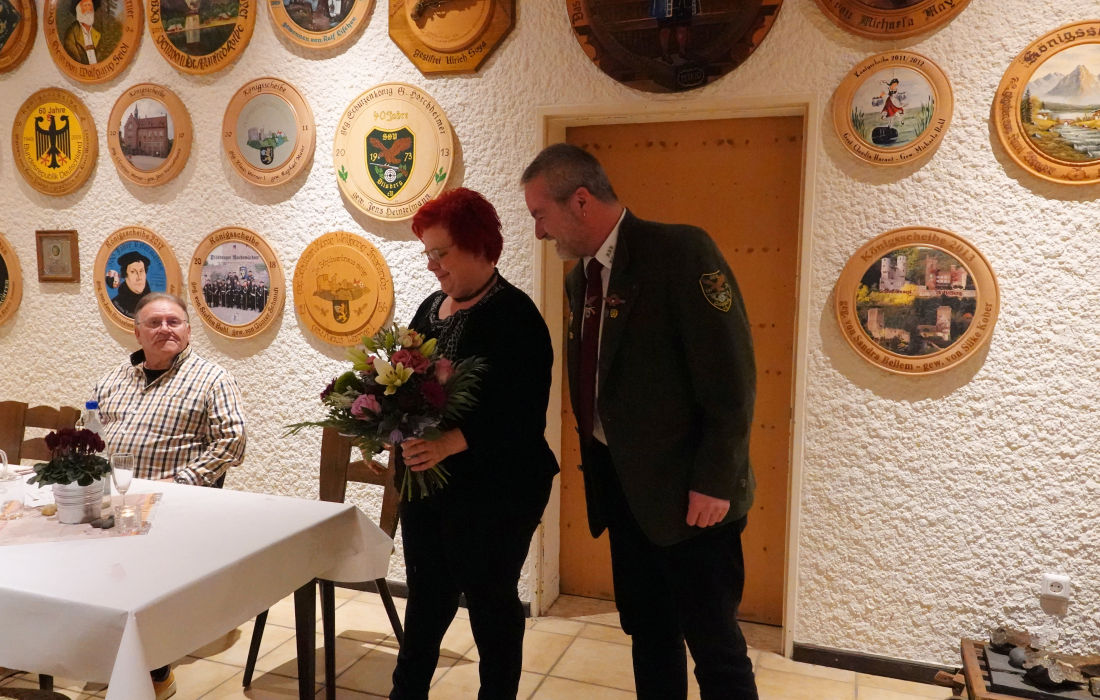 Der Abend startete mit einer Ansprache unseres Oberschützenmeisters Jens Heinzelmann er bedankte sich bei den Anwesenden für Ihr Kommen und vor allem bei Annett Müller für das von Ihr gezauberte Menü und überreichte ihr als Dank einen Blumenstrauß.