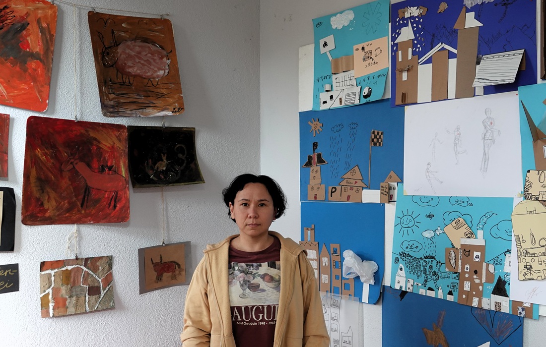 Für Jetbayeva entstand der Kontakt nach ihrem Umzug nach Dilsberg vor vier Jahren. Freunde ihrer Kinder trafen sich nach der Schule bei ihnen zu Hause, um gemeinsam zu malen. Dabei fiel immer wieder der Name Christine Kluge – und deren Wunsch nach Unterstützung. Aus ersten Hilfen in den Kursen entwickelte sich Vertrauen, aus Vertretungen schließlich die Nachfolge. „Kunst soll für alle Kinder zugänglich sein.“, sagt Dina Jetbayeva. Sie bringt vielfältige Erfahrungen mit: ein Studium der Internationalen Wirtschaft, Arbeit in einer Werbeagentur und ein Leben, das sich stets um Kinder und Ausdrucksformen drehte. 2018 gründete sie in Heidelberg einen Verein zur Förderung von Kindern mit Migrationshintergrund. Zunächst arbeitete sie mit Theatergruppen, später verlagerte sich der Schwerpunkt stärker auf bildende Kunst.