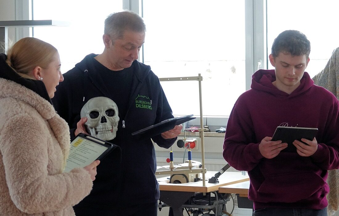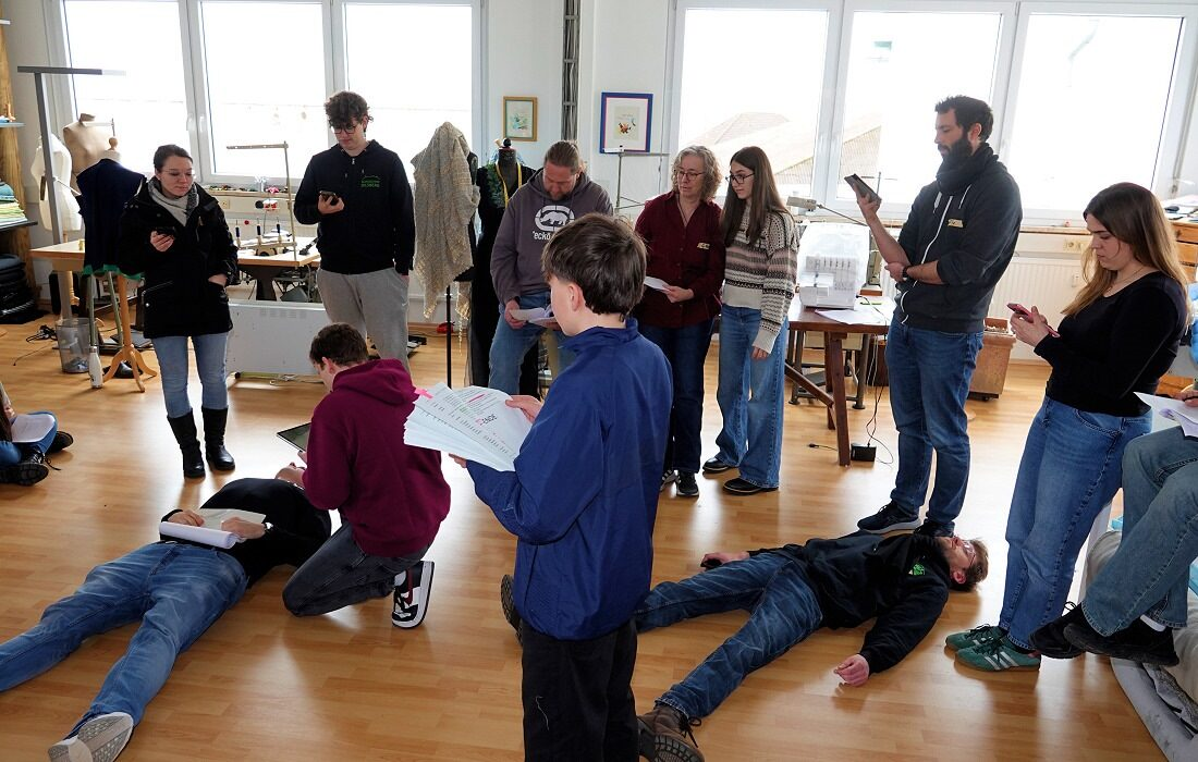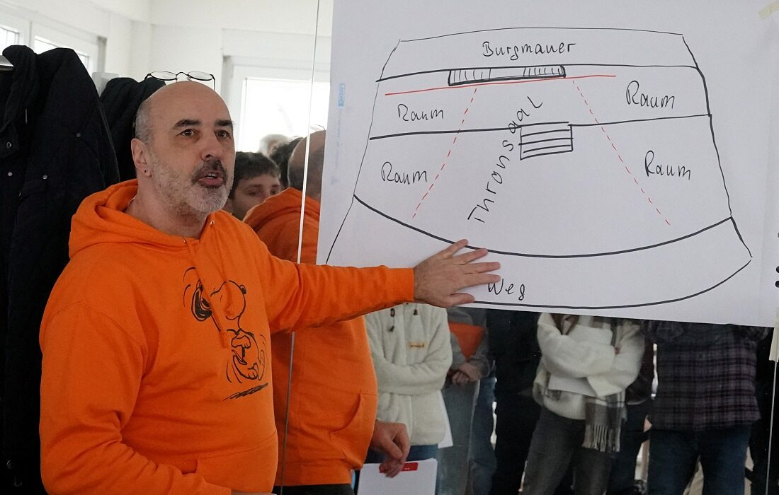 „Da kommt eine Mauer hin“, erklärte Falk-Jordan und skizzierte seine Bühnenideen. Für die Darsteller bleibt es vorerst Theorie – ab März wird auf der Bühne geprobt. Dort soll das Bühnenbild mit den Szenen wachsen.