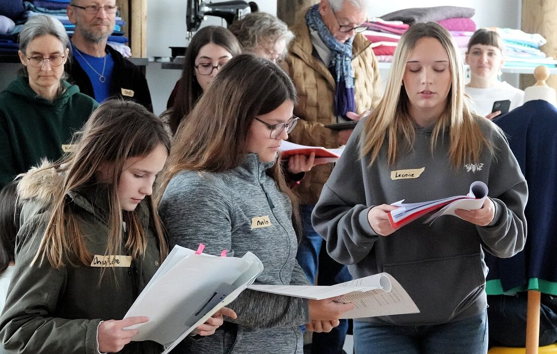 Mit dem Skript in der Hand begannen die Schauspieler, ihre Texte zu lesen und sich in ihre Rollen einzufühlen: eine ehrgeizige Ortsvorsteherin, eine genervte Regisseurin und ihr Assistent, die das Stück auf die Bühne bringen wollen.