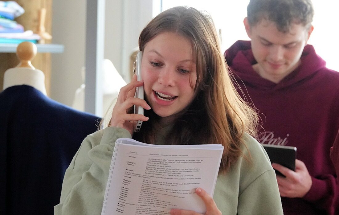 Zunächst müssen sie klären, wer welche Rolle übernimmt. Missverständnisse sorgen für Verwirrung, bevor die richtige Ophelia mit Laertes ihren Text durchgehen kann.