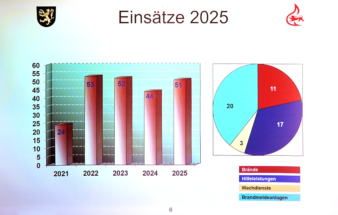 Neben den Einsätzen steht die Ausbildung im Mittelpunkt. In etwa 40 Übungen schärften die Mitglieder ihre Fähigkeiten, zum Beispiel als Maschinisten. „Über 1000 ehrenamtliche Stunden kamen zusammen“, berichtete Theocharidis. Außerdem absolvierten Yannis Theocharidis die Truppführerausbildung und Marius Maurer die Qualifikation zum Gruppenführer und Löschmeister. Die räumliche Lage der Feuerwehr bleibt ein Dauerthema.