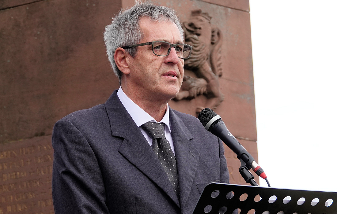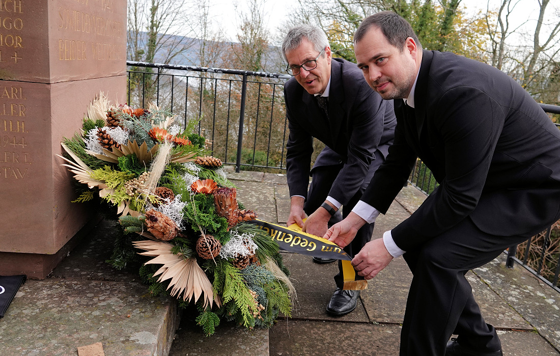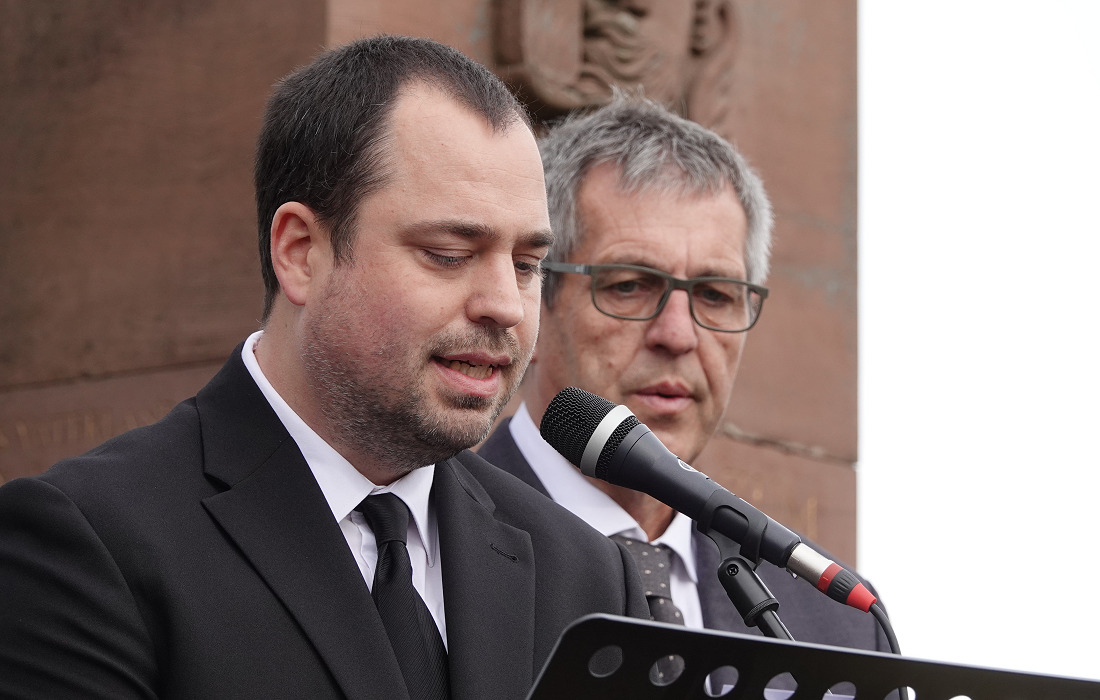 Thomas Ruf sprach das Totengedenken. Er erinnerte an die Opfer von Krieg, Gewalt und Verfolgung: Soldaten der Weltkriege, Gefangene, Vertriebene und Menschen, die wegen ihrer Herkunft, ihres Glaubens, ihrer Überzeugung, Behinderung oder geschlechtlichen Identität ermordet wurden. Auch Einsatzkräfte, Terroropfer sowie Opfer von Hass und Rassismus im Inland schloss er ein. „Wir teilen diesen Schmerz mit allen“, sagte Ruf. Er rief dazu auf, Frieden im eigenen Land und weltweit aktiv zu fördern.