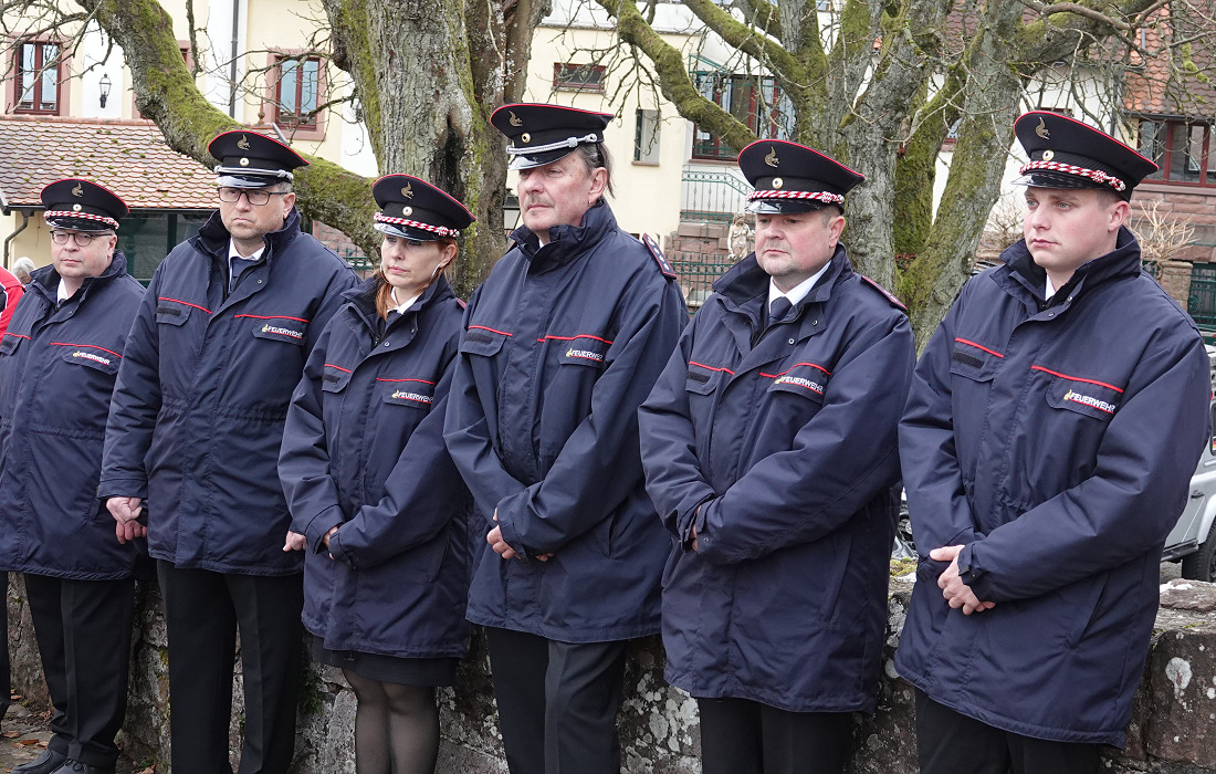 Die Freiwillige Feuerwehr Dilsberg legte den Kranz nieder. Abordnungen des Schützenvereins, des Turnerbunds und des Kyffhäuserbunds senkten ihre Fahnen. Ein Moment des Innehaltens für alle, die an diesem Mittag gekommen waren.