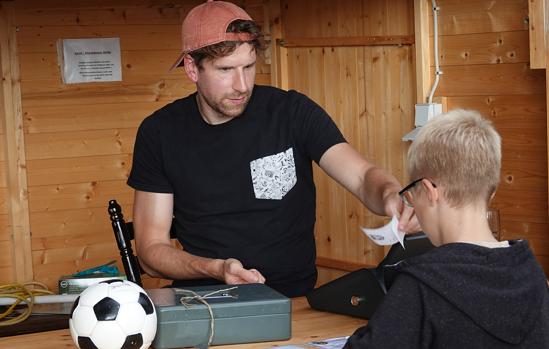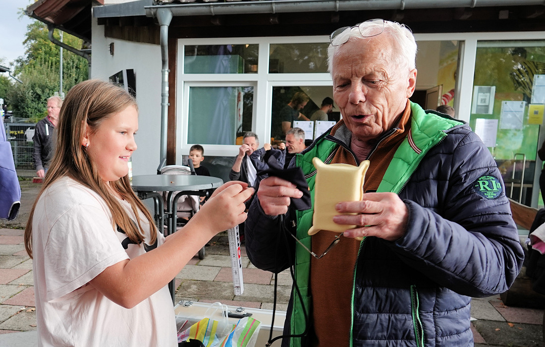 Auch FC-Vereinsvorstand Daniel Rittmeier freute sich über seinen Losgewinn, vor allem aber über den Zuspruch an diesem Tag auf dem FC-Gelände. Auch Bürgermeister Jan Peter Seidel schaute am Nachmittag noch vorbei und mischte sich unter die Gäste.