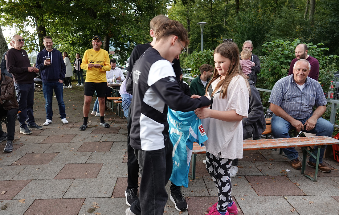 Der Hauptgewinn, ein Trikot von Andrej Kramarić, zog der Dilsberger Kicker Janik Seufert. Wie er sich das mit seinem Kumpel Moritz Hölzer aufteilt, die beiden hatten zusammen 18 Lose im Einsatz, ließen die beiden offen. Zumal das Trikot vom Hoffenheimer Spieler noch signiert werden soll.