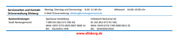 Geänderte Öffnungs- und Dienstleistungszeiten der Verwaltungsstelle Dilsberg