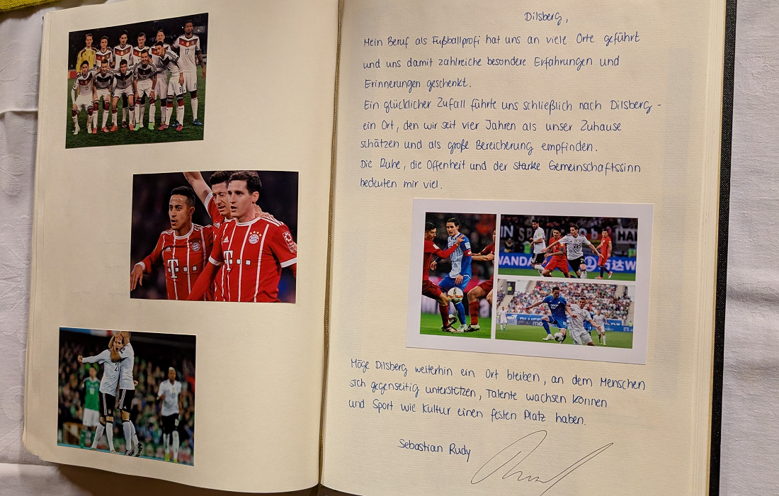Der ehemalige Fußballnationalspieler Sebastian Rudy trug sich Anfang Dezember in das Goldene Buch von Dilsberg ein. Mit dieser Ehrung würdigt der Ortsteil Dilsberg nicht nur die sportlichen Erfolge des gebürtigen Villingeners, sondern auch seine Haltung, Bescheidenheit und Verbundenheit mit der Gemeinschaft.