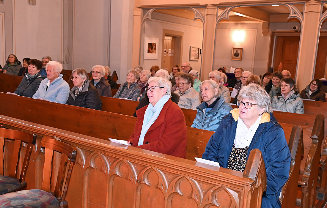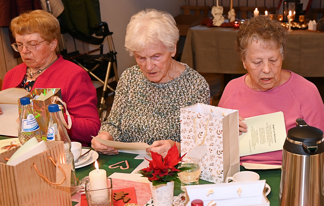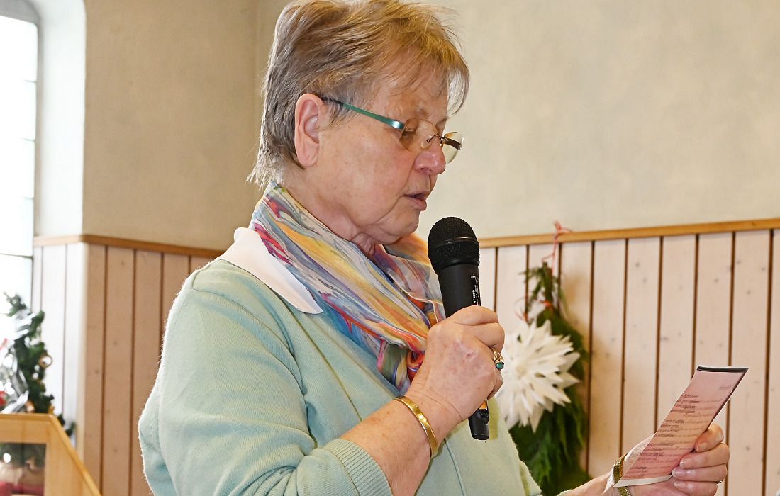 Maria Roth hatte eine kurze Geschichte vorbereitet, die die Gäste sofort in weihnachtliche Stimmung versetzte. Anschließend trug Waltraud Horchheimer weitere Weihnachtsgeschichten vor. Nach den Erzählungen stimmten alle gemeinsam das Lied „Alle Jahre wieder“ an.