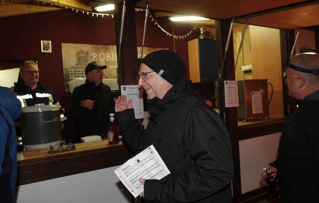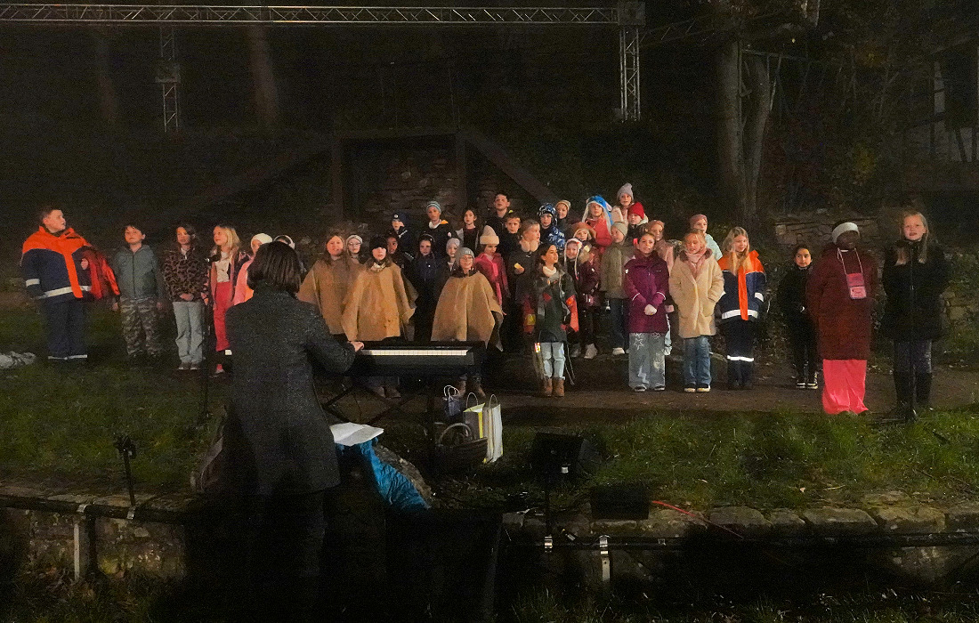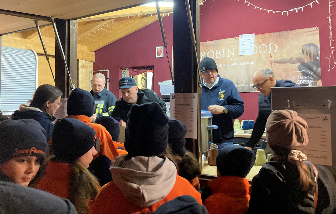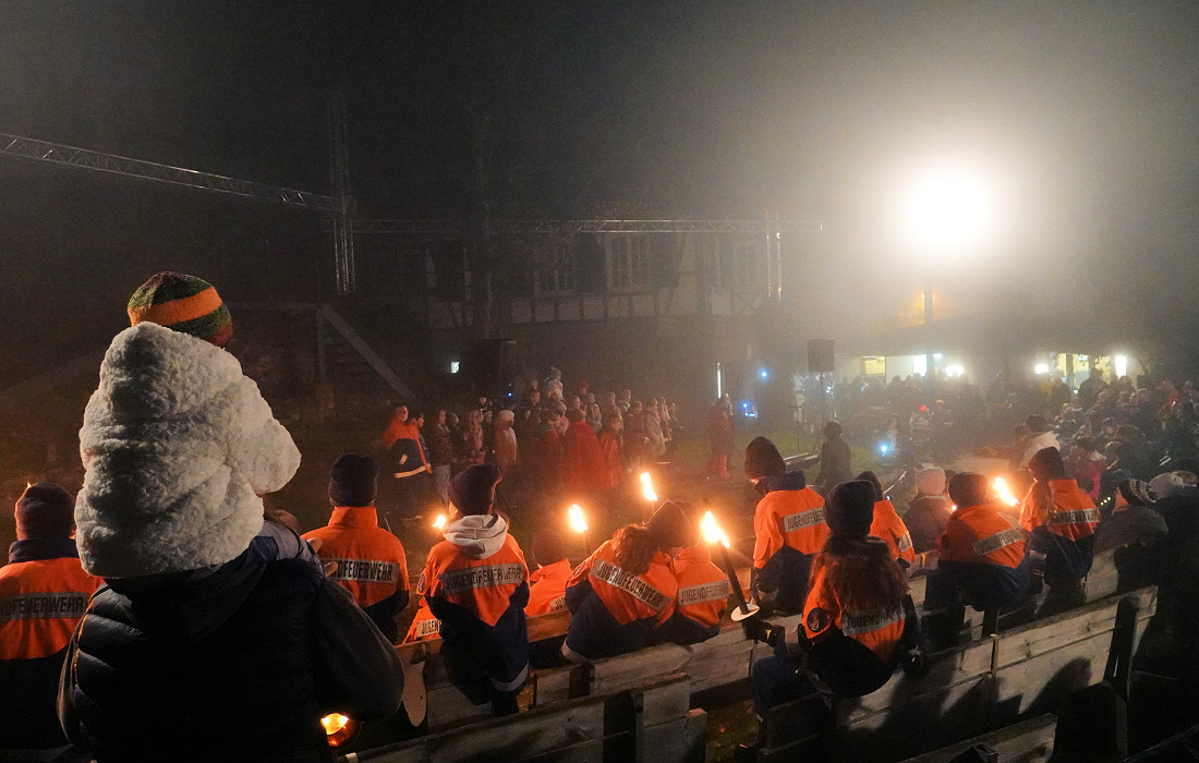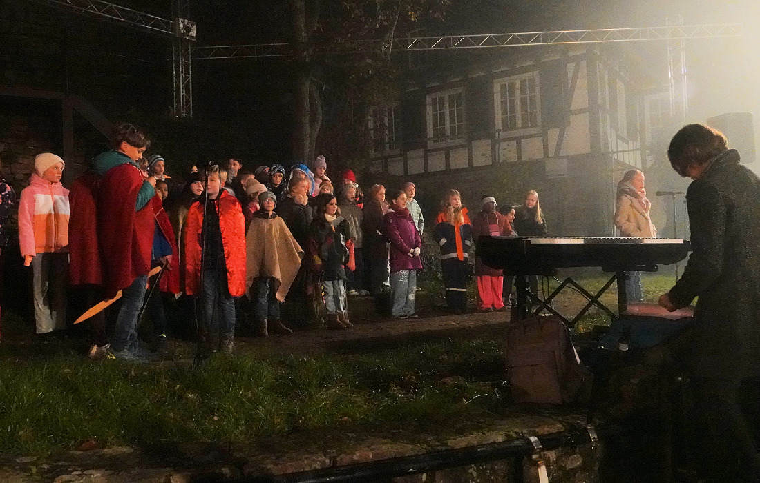 Mit ihren Stimmen und Worten machten die Kinder die bekannte Legende lebendig – ein besonderer Höhepunkt des Abends. Ortsvorsteher Andreas Erles dankte im Anschluss allen Beteiligten, besonders Chorleiterin Andreas Stegmann, die das Singspiel mit den Kindern einstudiert hatte, sowie Markus Gaa von der Burgbühne für seine technische Unterstützung und der Feuerwehr Abt. Dilsberg samt Jugendfeuerwehr für die tolle Unterstützung. Nicht zu vergessen: der Musikverein Trachtenkapelle Dilsberg mit Dirigent Walter Nußko.