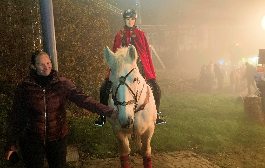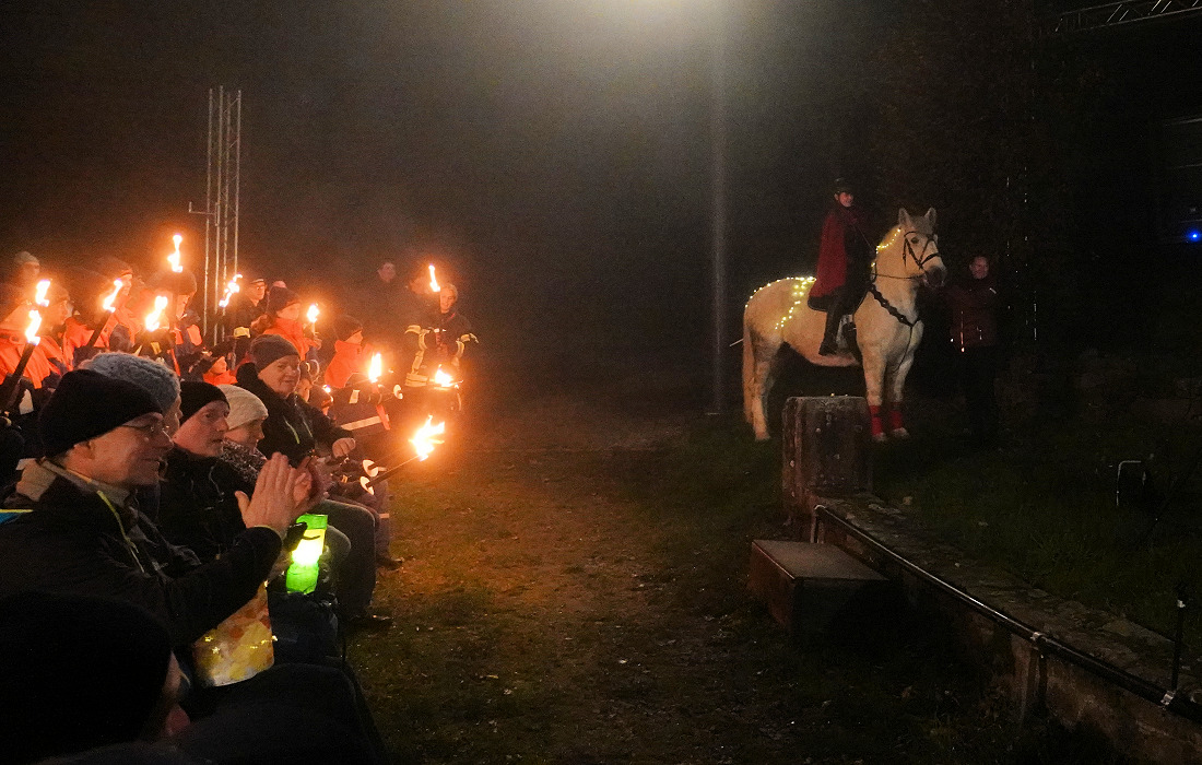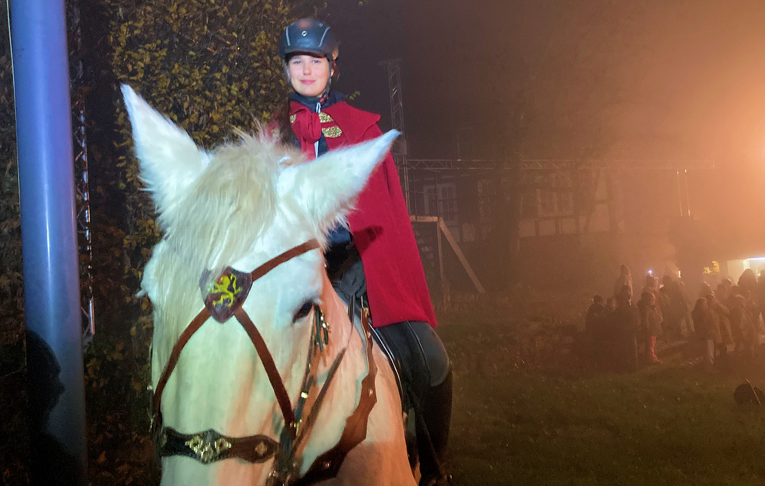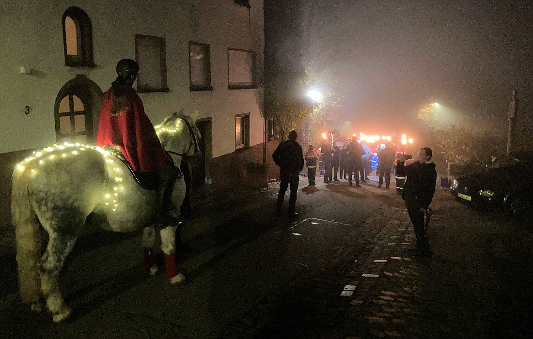 Dichter Nebel lag über Dilsberg, als sich am frühen Abend der traditionelle Sankt Martinszug in Bewegung setzte. Angeführt wurde der Zug von Anna Münch auf ihrem Pferd. Hinter ihr marschierten die Musikerinnen und Musiker der Trachtenkapelle mit ihren Instrumenten und Notenblättern.