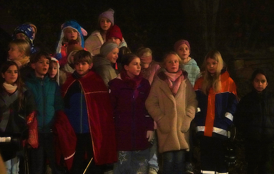 Unter Leitung von Andrea Stegmann erzählten die Kinder in Liedern und kleinen Spielszenen die Geschichte des heiligen Martin: Von den römischen Soldaten, die in Frankreich Station machten, bis zu dem Moment, in dem Martin seinen Mantel mit dem frierenden Bettler teilte.