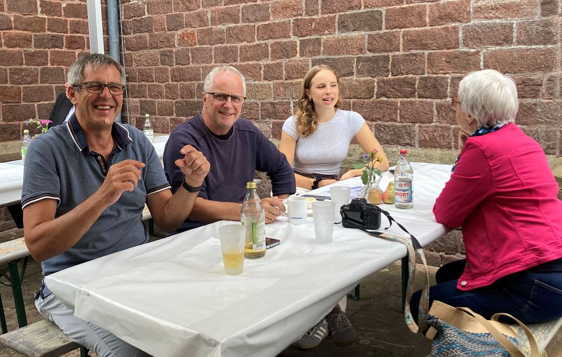Ortsvorsteher Andreas Erles ließ sich die süße Spezialität ebenso schmecken wie die Suppe. So wie er, schwärmte auch ein Ehepaar aus Neckargemünd von der Bewirtung. „Das Kirchencafé ist für uns ein fester Termin“, sagten sie. Auch Pfarrerin Franziska Schmidt und ihre Vorgängerin Michaela Deichl nutzten die Gelegenheit, mit den Gästen ins Gespräch zu kommen – und sich am Apfelgebäck zu stärken.