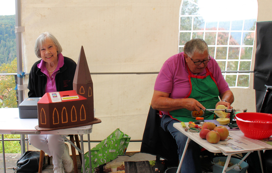 Schon früh am Morgen hatte das Helferteam aufgebaut, geschmückt, Kaffee gekocht und Kuchen gebracht. Ein langer Tag, der von früh bis spät dauert. „Nach dem letzten Kirchencafé gehen wir jetzt erst mal in eine Pause“, sagte Ernst Merdes, der zweite Vorsitzende. Doch vorher steht noch die Bethelsammlung am 11. Oktober an. Dann nehmen die Ehrenamtlichen des Vereins in der Grundschule Dilsberg-Mückenloch Altkleider entgegen. Und Mitte Dezember sind sie wieder im Einsatz – bei der Dilsberger Weihnachtsmeile am dritten Advent.