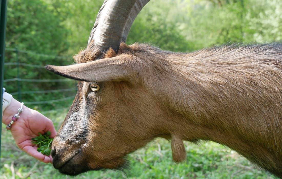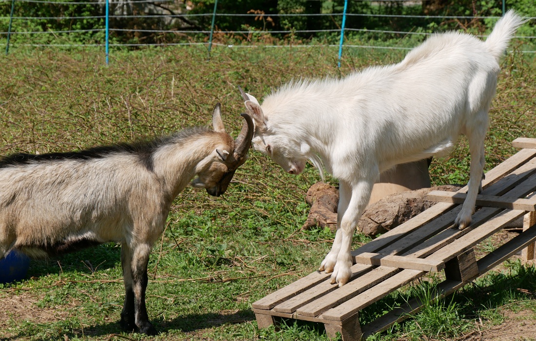 Die drei jungen, kastrierten Ziegenböcke zeigten sich als ausgesprochen lustige und neugierige Gesellen. Sie sind sehr menschenbezogen und kuscheln gerne, erzählte Nicole Tettweiler. Und die drei haben jede Menge Spaß miteinander, wobei auch mal eine kleine Rauferei im Spiel ist.