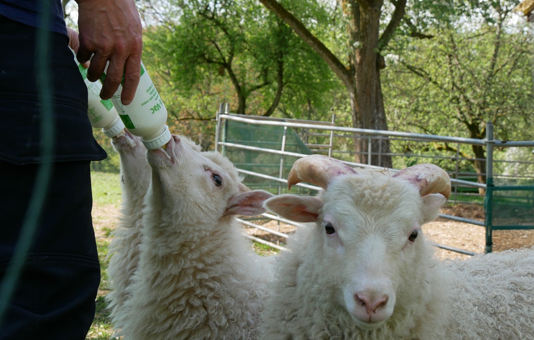 „Ich möchte zeigen, dass ein Schaf oder eine Ziege genauso leben möchte, wie ein Hund oder eine Katze“, betont Nicole Tettweiler. „Dass sogenannte Nutztiere genauso wertvoll sind, wie sogenannte Haustiere. Meines Erachtens gibt es keinen Unterschied. Alle Tiere wollen das gleiche: Leben und das artgerecht. Jedes Tier hat seinen eigenen Charakter und seine Geschichte“. Seit wenigen Wochen zieht Tettweiler drei verwaiste Lämmer mit der Flasche groß. Jetzt sind sie drei quicklebendige, fröhliche „Spring-ins-Feld“ und bestens in die Herde integriert.