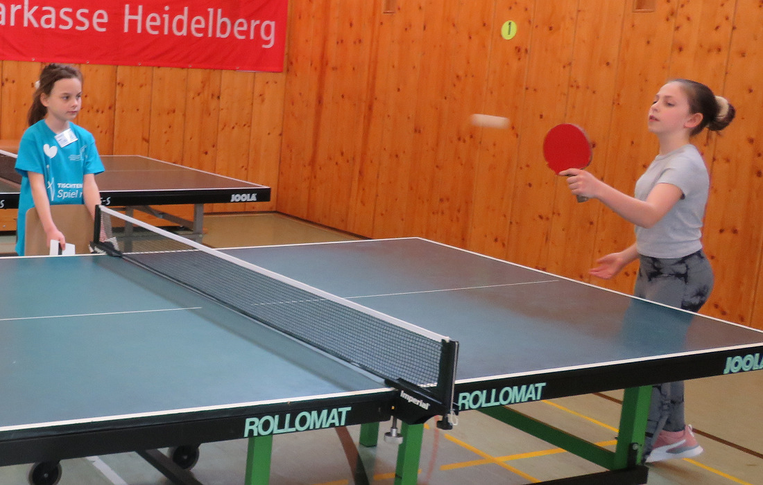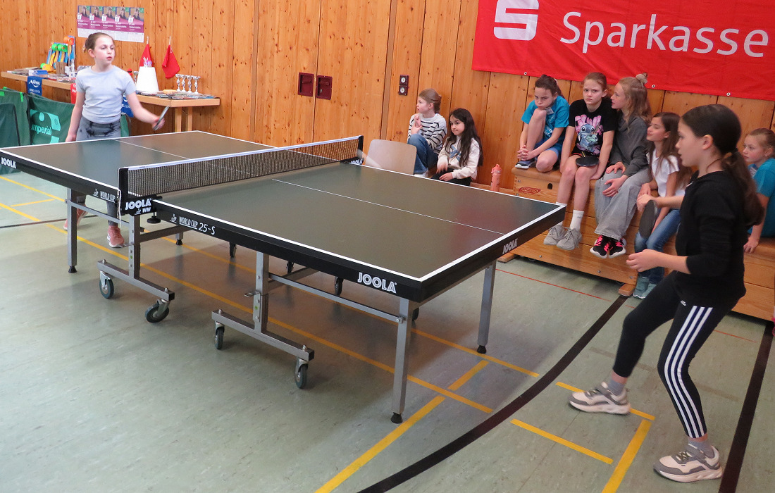 Ein besonders starkes Spiel war das von Pauline und Emily aus der vierten Klasse: Die beiden schafften mitunter über einhundert Ballwechsel, ohne dass einmal ein Ball den Tisch verlassen hätte.