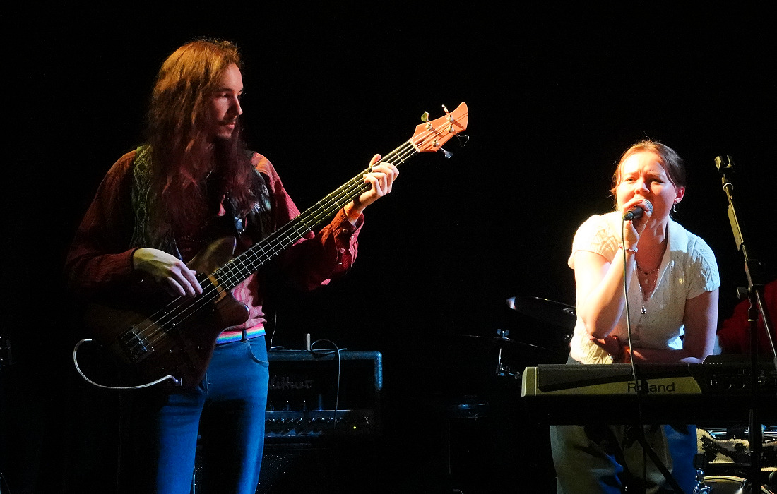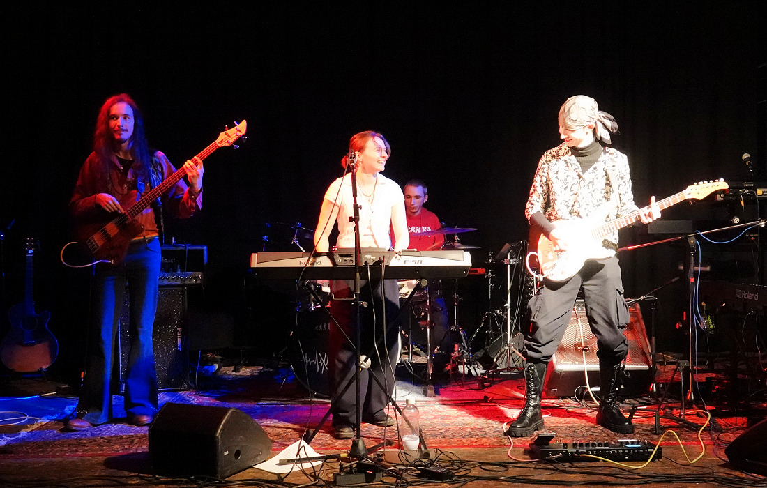 Mit ihr auf der Bühne: Schubi Müller (Gitarre), Josua Friedrichs (Bass) und Bastian Friedrichs (Schlagzeug). Dynamische Wechsel zwischen Zartheit und Wucht fesselten das Publikum sofort. Songs wie „Losing Light“, das bereits bei SWR1 gespielt wurde, „Blinded“ und „Firefly“ begeisterten. Letzteren kündigte Ihrig als „Glühwürmchen in dunklen Zeiten“ an. Vinyl setzt auf Eigenkompositionen und durchdachte Dramaturgie. Simone Ihrig flirtete mit dem Publikum, forderte zum Mitsingen auf und setzte sich zwischendurch auch mal lässig an den Bühnenrand. Was ein Auftakt!