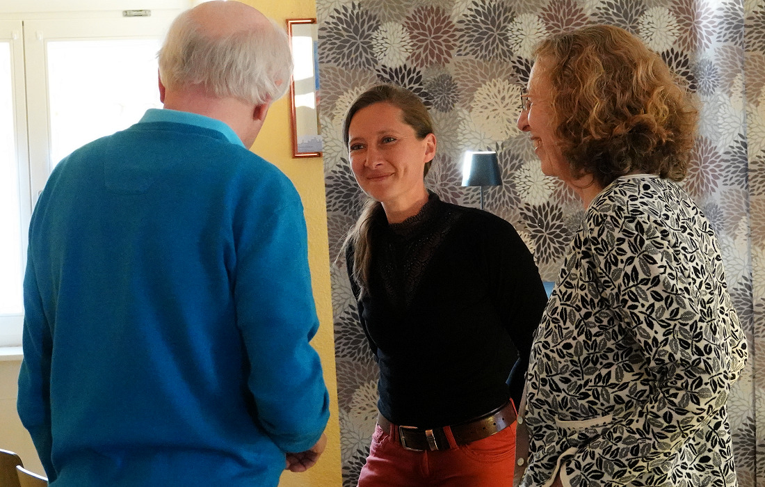 Katharina Gromann begrüßte die Gäste und Künstler und erzählte von einer E-Mail Rolf Thums, einem der Gründer der „LeseZeit“. Bei einem Spaziergang erinnerte er sich an frühere Literaturabende im „Café Pippifax“ in der Dilsberger Feste. Diese Erinnerung brachte ihn auf die Idee, die Lesungen wiederzubeleben.