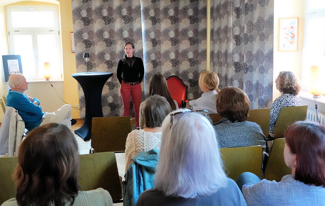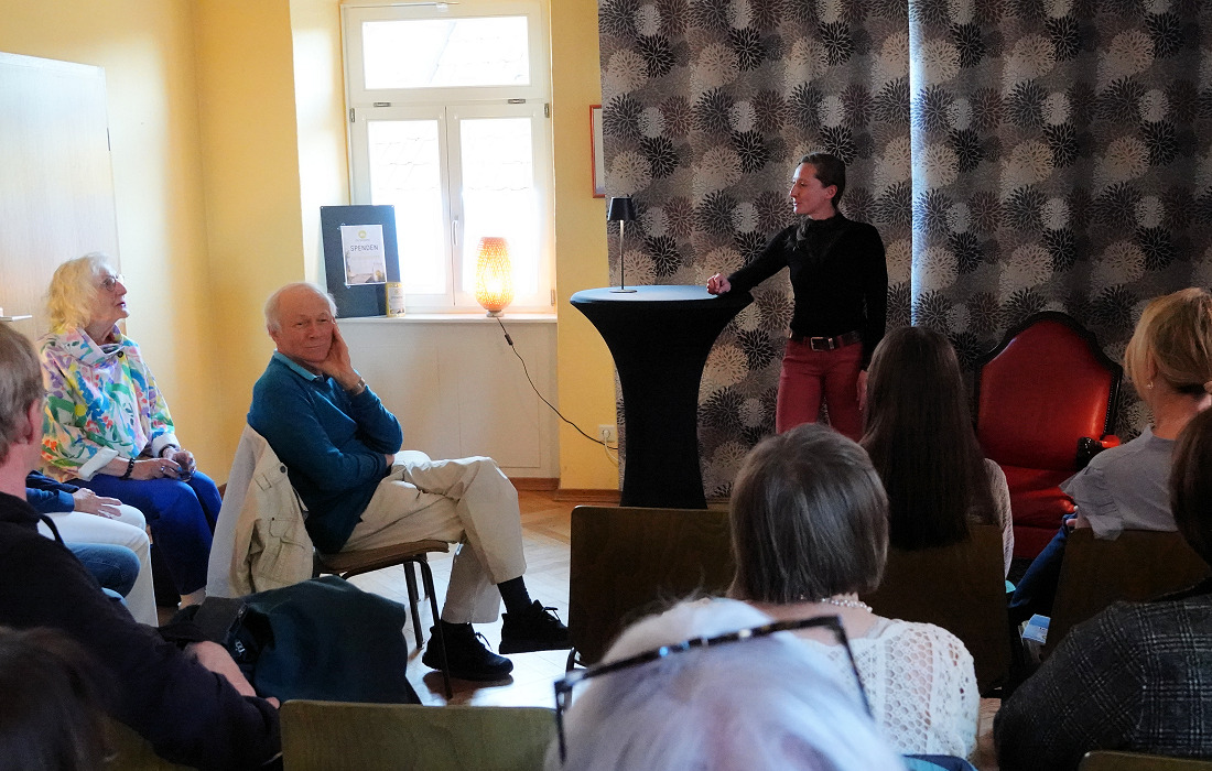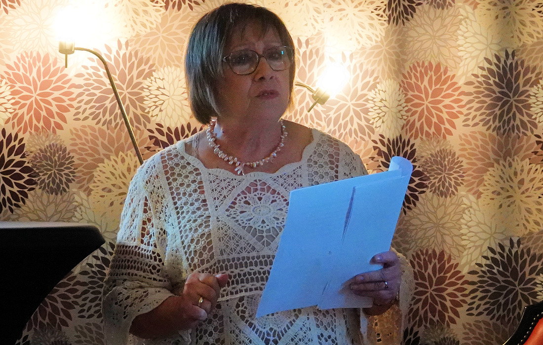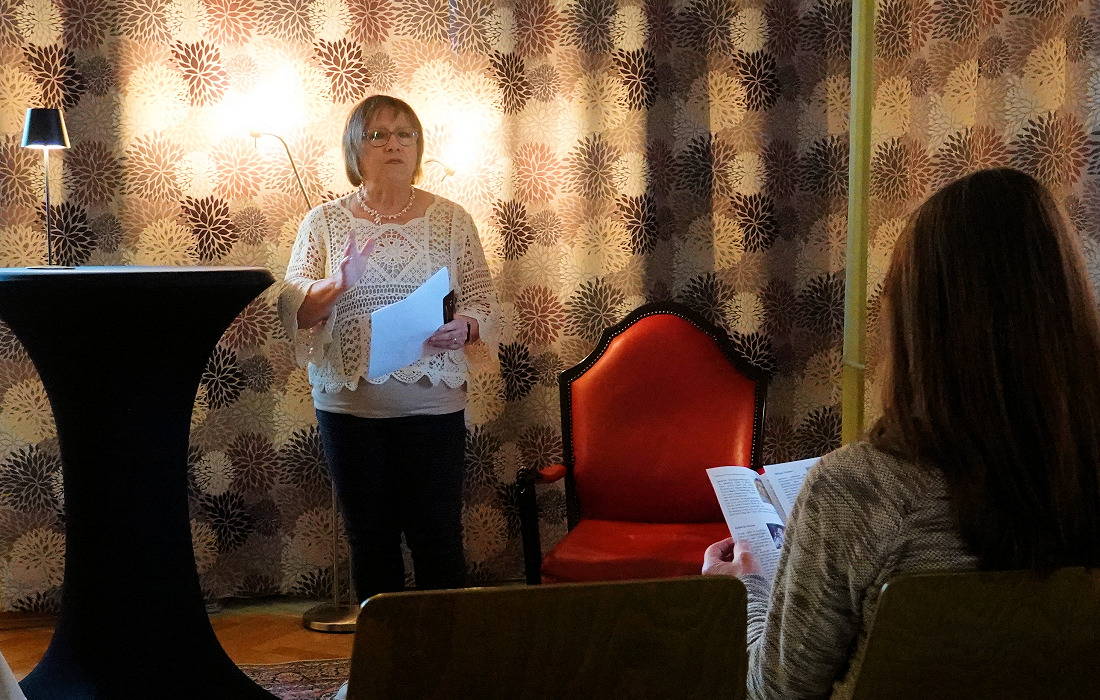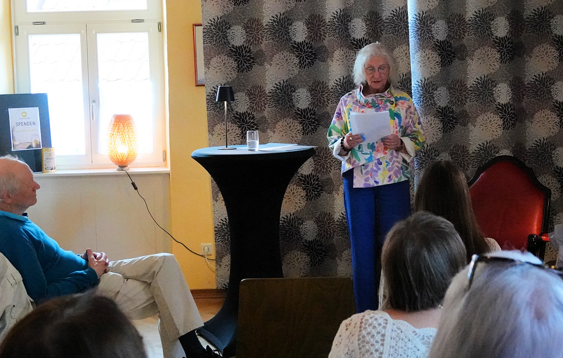 Marga Vedder, gebürtig aus Hamburg und seit 1976 in Speyer zu Hause, schöpfte aus ihrem beruflichen Erfahrungsschatz als Kosmetikerin. Mit humorvollen Anekdoten unterhielt sie die Zuhörer: von der Lehrerin, die ihre Putzfrau in der Badewanne erwischt, bis zu Haustieren mit Vorliebe für Armani-Anzüge. Ihre klug komponierten Geschichten sorgten für beste Unterhaltung.