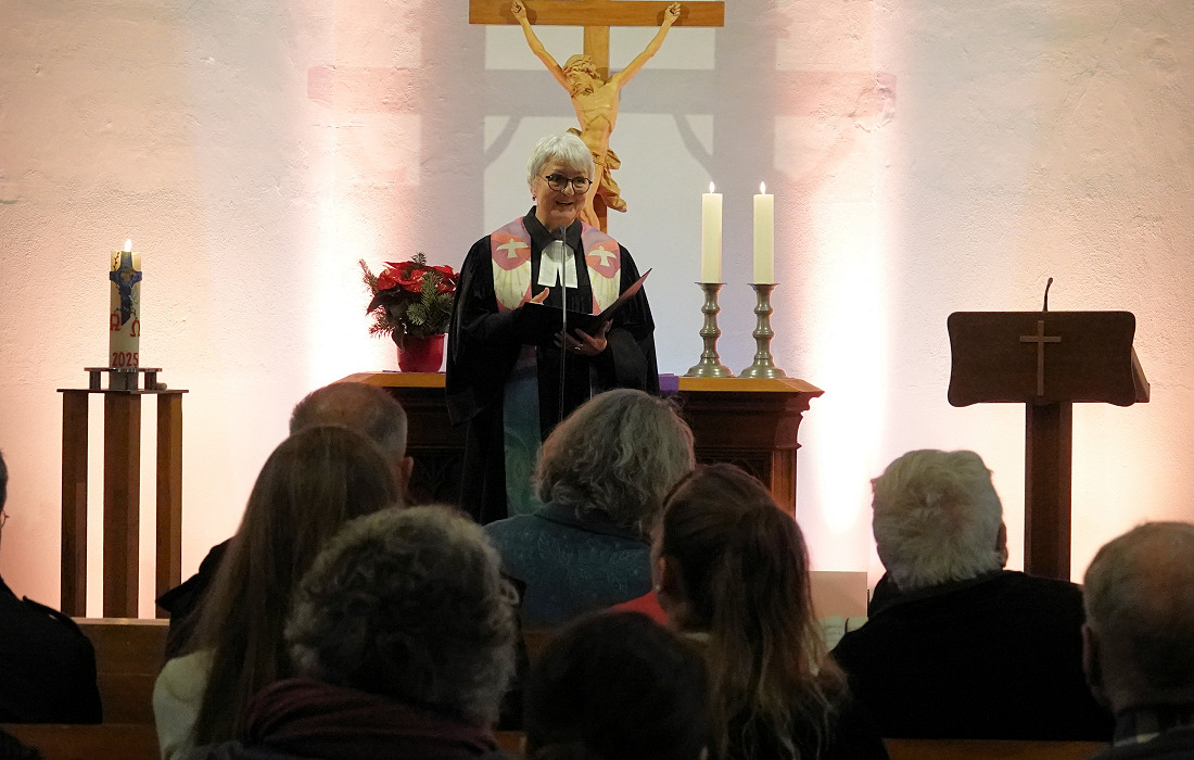 Die Kirchenbänke in der Evangelischen Kirche in Dilsberg waren sehr gut besetzt als die ehemalige, bis zum Sommer diesen Jahres amtierende Pfarrerin Michaela Deichl i. R. die Gemeinde zum ersten Advent und Kirchen-Wahlsonntag begrüßte. Neben der Wahl waren sowohl der Beginn der Adventszeit als auch das Wiedersehen mit der ehemaligen Seelsorgerin wohl die Gründe, die die Gemeindeglieder so zahlreich erscheinen ließen.