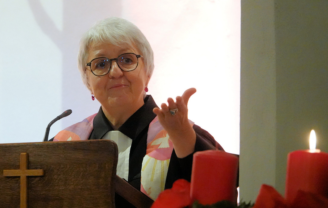 Während die Gemeinde die erste Strophe von „Wir sagen euch an, den lieben Advent“ sang, zündete Deichl die erste Kerze am Adventskranz an, der bis zum neuen Jahr den Taufstein schmücken wird. Mit ihrer Predigt vermittelte sie dann die Vorfreude auf die an Weihnachten zu feiernde Geburt Jesu und die damit zu verbindende Hoffnung für die ganze Menschheit.