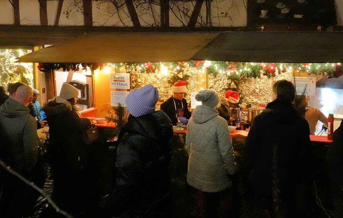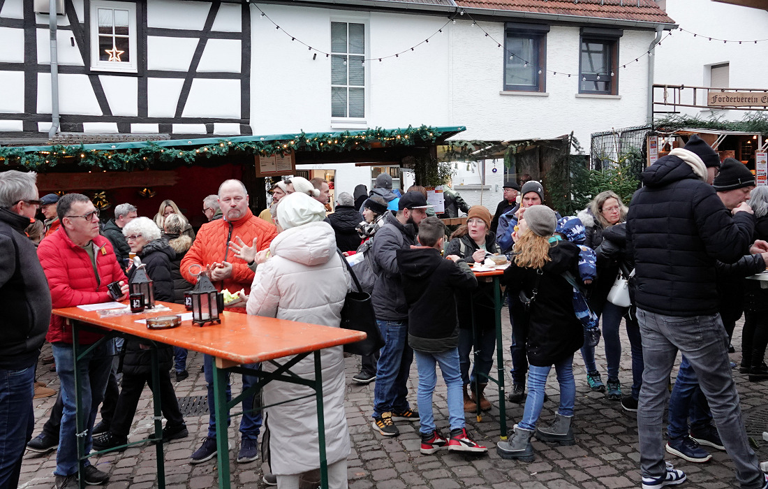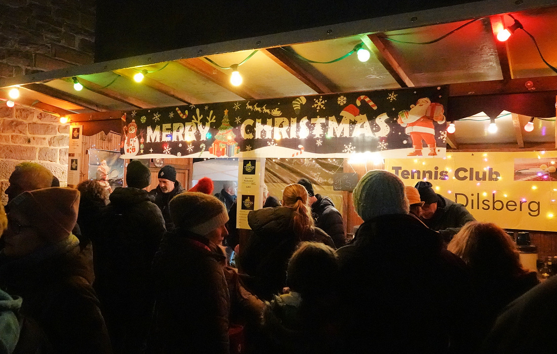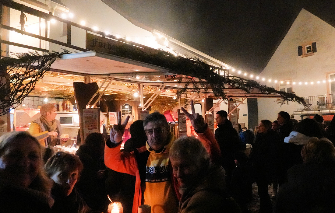 Zwischen Fachwerk, Burgmauern und Lichterglanz machen die Dilsberger Vereine die Weihnachtsmeile seit Jahren zu einem der herausragenden Märkte der Region. Leuchtende Augen und staunende Blicke verrieten, wie vielfältig das Angebot war – weit mehr als ein klassischer Weihnachtsmarkt. Menschen aus nah und fern schätzen diese besondere Mischung aus historischem Ambiente und Dorfgemeinschaft. Viele nutzten den Glühwein-Express, den Bus-Shuttle vom Neckargemünder Bahnhof. So auch ein Ehepaar aus Heidelberg: „Wir kommen jedes Jahr wieder, um die besondere Atmosphäre zu genießen“, sagten sie, bevor sie im Besucherstrom durch die festlich geschmückten Gassen verschwanden. Über 1000 Menschen brachte der Glühweinexpress zur Feste hinauf.